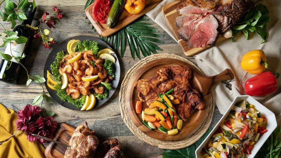 今年のブッフェでは、ジャークチキンやBBQスペアリブなどの肉料理を中心に、ローストビーフのカッティングサービスやシュラスコのタイムサービスなど、見た目にも楽しいパフォーマンスメニューが充実しています。