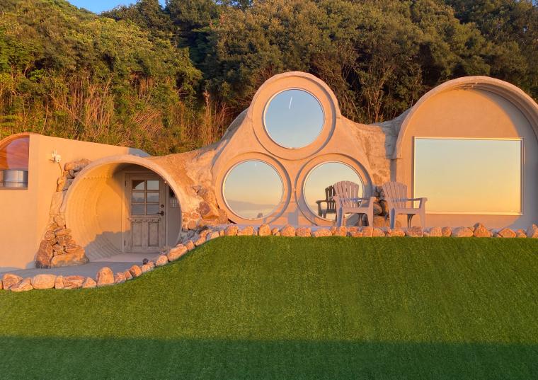 「COVO ushimado」は2棟のみ、1日2組限定の完全プライベート空間です。うち1棟はオーシャンビューのトンネルダブルベッドルームで、もう1棟は窓いっぱいに緑を望むフォレストビューのコテージツインベッドルーム仕様。ベッドに寝転がって外を眺めるだけで癒やされる、ユニークで特別な造り印象的です。