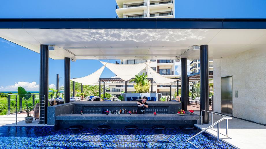 プールサイドにあるのは、ラテンイタリアン料理やカクテル、シーシャを提供する「Sky Bar by BATIDA」。青い海やサンセットを愛でながら心身ともにリラックスできるバーです。