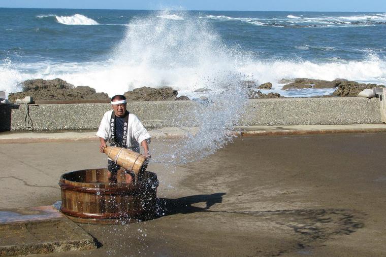 この塩は、桶でくんだ海水を砂に撒き、太陽と風で乾燥させるという、手間と時間のかかる伝統製法によって作られます。国の重要無形民俗文化財にも指定されており、その味わいは料理人からも高く評価されています。
