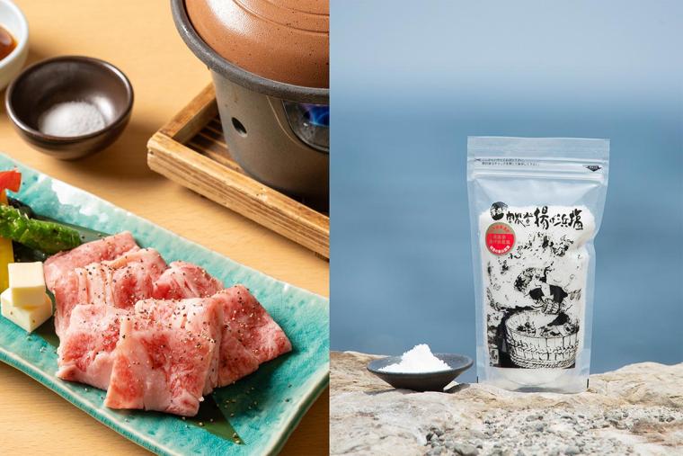 今回の特別メニュー「能登牛の陶板焼き ~揚げ浜塩を添えて~」では、石川県珠洲市の「道の駅すず塩田村」で作られた“揚げ浜塩”を使用。能登の黒毛和種「能登牛」の豊かな旨味と、まろやかで甘みのある塩が絶妙に調和し、素材の魅力を引き出します。