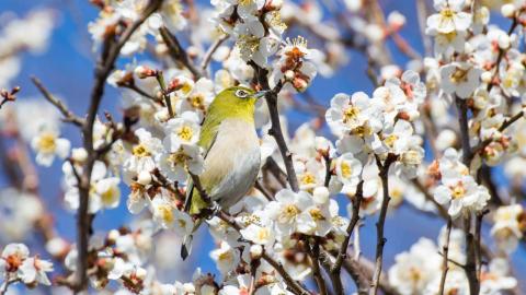 期間中は梅の開花から満開、そして新緑という大きな時間軸がもたらす梅苑の移り変わりと、その日その瞬間の光の変化といった小さな時間軸により、訪れるたびに違った雰囲気を楽しめるのも、作品ならではのポイントです。