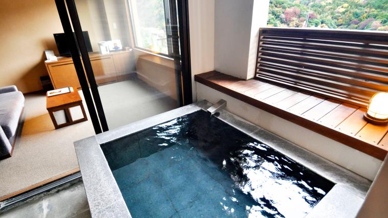 1日約25,000トンの湧出量、複数の泉質を堪能できる、日本有数の温泉地・箱根。「富士箱根伊豆国立公園」の中央にあり、四季折々の自然の景色も楽しめます。今回は、お部屋で露天風呂が楽しめる人気宿をご紹介します!湯船から外の景色を眺めながらゆっくりとくつろぐ贅沢なひとときを。