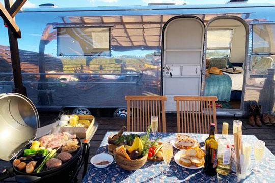 大きな窓からゴルフコースを眺めるドームテントや地上約3~6mの斜面に建ちまるで宙に浮かんでいるかのような気分を楽しめる展望ドームテント、棟ごとにバスルームがついて快適な高床式ドームテントも選択可能。西海岸気分のヴィンテージエアストリームも人気です。