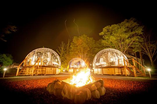 世界初のトリプルドームや高さ約10mのドーム、リビングと寝室を分けた日本初のツインドームなど、新しい体験ができるお部屋もそろいます。自然との一体感と上質な居心地を両立させたラグジュアリーな空間で、特別なひとときを過ごせます。