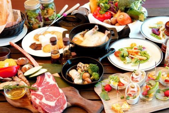テントデッキでは、シェフ特製のBBQディナーや朝どれ野菜の朝食を。BBQコンロを無料レンタルして、食材を自由に持ち込んで楽しめるプランもあります。