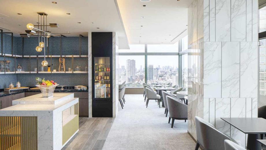 エグゼクティブフロア宿泊者専用プライベートラウンジでは、チェックイン・アウト手続きのほか、時間に合わせてコーヒーやスイーツ、アルコールなどがいただけるフードプレゼンテーションのサービスも。ホテル内のフィットネスクラブや、ビューラウンジの利用なども可能です。