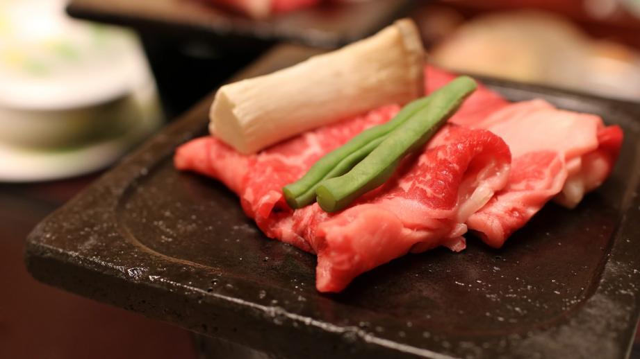 和牛の最高ランクであるA5等級の牛肉のみを、精肉店のオーナーが厳選して宿へ提供。こだわりのメイン料理は、自家製ダレにさっとくぐらせポン酢でさっぱりと肉の旨みを味わう「しゃぶしゃぶ」と、濃厚な地卵と自家製の甘辛いダシが絶妙にマッチする「すき焼き」のいずれかを選択可。こだわりぬいた黒毛和牛肉をぜひ味わってみてください。