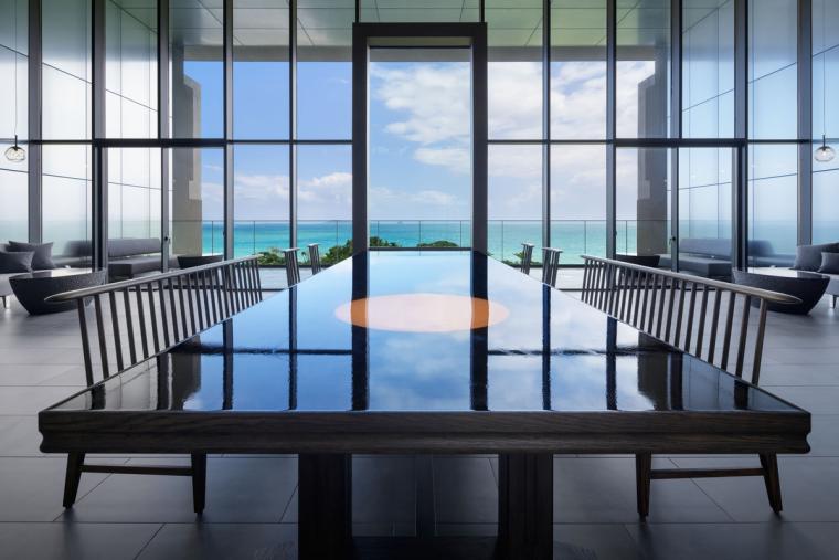 手つかずの自然が残る長崎・五島列島で、水平線を眺めながら日常を離れた癒やしの時間を過ごせる「五島リトリート ray by 温故知新」。水平線が印象的に映るロビーをはじめ、テラスやダイニングなど、海と一体化するかのようなデザインが素敵なホテルです。