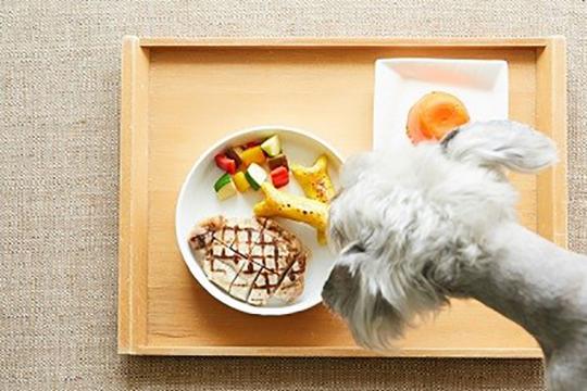 ペットと宿泊できるテラス棟は、ホテル棟と離れた場所にあり、気兼ねなくゆっくり過ごせます。ドッグケージやトイレシート、お散歩グッズなどの愛犬用のアメニティも充実。夕食はお部屋食で愛犬と一緒に。ワンちゃん用の夕食メニュー(別途有料)も対応可能です。