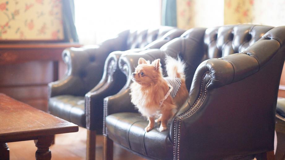 那須の閑静な森に囲まれた温泉ホテル「ホテル森の風那須」は、どこか懐かしい雰囲気が漂う大正建築風の建物が特徴的。大きな窓から緑を眺める客室の一部には、ペット専用ルームを用意。室内ケージやトイレシーツなどは準備されていますが、ワンちゃんのごはんやおやつ、グッズなどは持参が必要です。