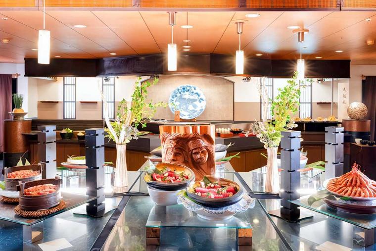 天井が高く開放感のあるビュッフェレストラン「天河」「HAPO」では、食の香りとにぎわいが五感を刺激し、旅の食卓を豊かに彩ります。