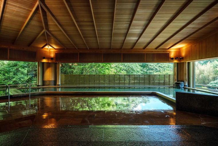 温泉は、「生きている湯」と呼ばれる長門湯本の源泉を使用。やわらかな肌ざわりのアルカリ性単純温泉が体を包み込み、入るたびに肌がしっとりとなめらかにととのっていくよう。