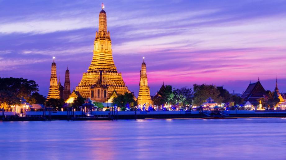 バンコク最古の寺院「ワット・ポー」(別名・涅槃仏寺院)は、全長46m、高さ15mの金箔に覆われた涅槃仏があることで有名です。アユタヤ時代に建てられた「ワット・アルン」(別名・暁の寺)は、夕暮れ時に川に映る姿が美しく、バンコクを代表する風景のひとつとなっています。