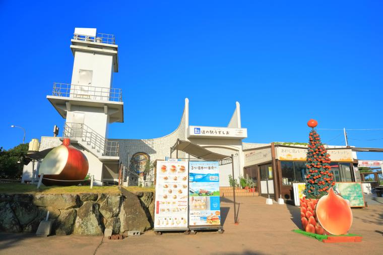 島内には伝説にゆかりのある神社やお寺、奇岩などが。島の周りをめぐる周遊船や、ボランティアガイドによる散策ツアーなども実施されています。島内を一周する周遊道路は約7.9km、約4時間ほどのコースなので、体力に自信のある人は歩いて散策するのもおすすめ。夏には穴場のビーチで海水浴も楽しめます。