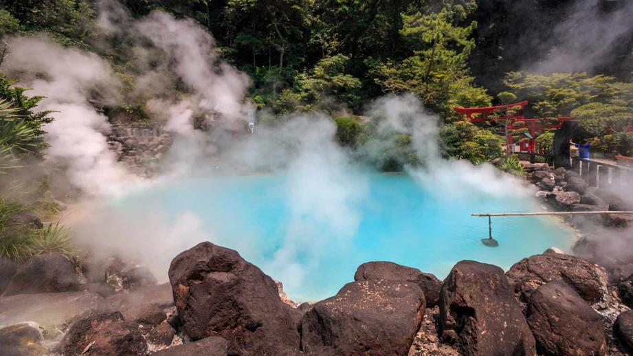 別府温泉内に点在する自然湧出の源泉を巡る「地獄めぐり」。地獄の名にふさわしい奇観を呈する7つの源泉は、コバルトブルーの泉色の「海地獄」や真っ赤な「血の池地獄」、温泉熱を利用してワニを飼育する「鬼山地獄」、日帰り入浴が楽しめる「鬼石の湯」などさまざまな特徴があります。休憩スポットでは、地獄ゆで卵や地獄蒸しプリンが名物。