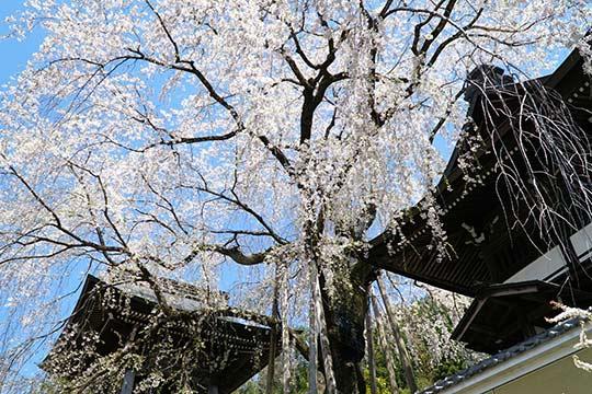 鐘桜のかたわらに雄大に咲き誇るしだれ桜が有名で、江戸の遊郭から新しい鐘とともに贈られたことから別名「遊女桜」とも呼ばれます。市指定天然記念物で、推定樹齢200年と言われています。見頃は4月中旬からです。