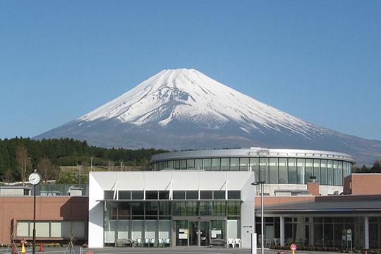 富士山の魅力をさまざまな形で発信する「富士山樹空の森」。富士山に関する企画展を開催する展示室や、富士山の景色を楽しめる展望テラス、地元の農産物や加工品を揃える地域交流スペースのほか、屋外にはアスレチックやパークゴルフ場も備えたスポットです。