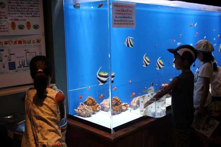 大きな水槽で浜名湖の魚や生き物をみたり、餌やりの公開を見学したり、タッチプールで触れ合ったりできる体験型の小さな水族館です。