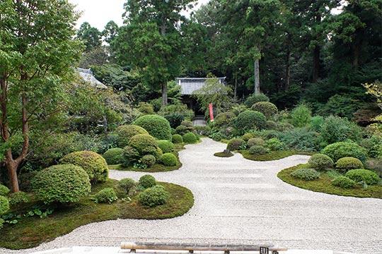 神亀3(726)年に開かれた古刹「摩訶耶寺(まかやじ)」。県下最古の鎌倉時代前期作の庭園は、平安時代の様式を色濃く残す池泉観賞・回遊式蓬莱庭園。その見事さは、龍潭寺のそれに勝るとも劣りません。宝物殿に並ぶ、国指定重要文化財の千手観音立像と不動明王立像、県指定重要文化財の阿弥陀如来像の三尊も必見。いずれもヒノキの1本造りで仕上げられています。