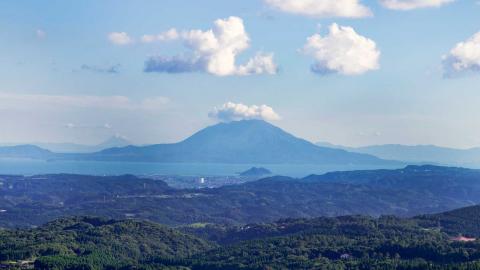 大隅半島の高台にある公園。もともと林業従事者の休憩施設として造られましたが、現在は絶景を眺めるビュースポットとして評判となっています。標高約439メートルの展望所から見下ろす錦江湾の景色は雄大そのもの。