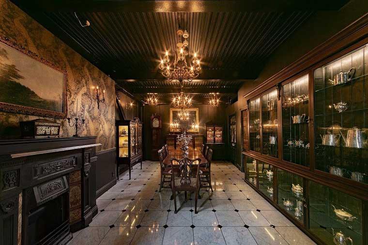 鶴岡八幡宮から徒歩約1分。2022年9月、鎌倉のメインストリートに誕生した英国アンティーク博物館です。外観のデザインは、世界的に有名な建築家・隈研吾氏により設計された鎌倉彫をモチーフにしたもの。4階建ての館内には、シャーロック・ホームズの部屋やヴィクトリア時代などのテーマに沿った空間がコーディネートされ、アンティーク家具が展示されています。