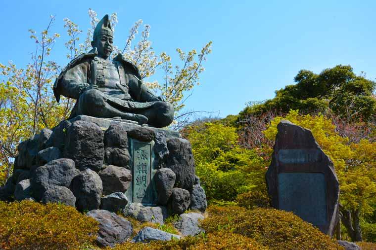 源氏山公園は、小高い丘の上にある緑豊かな公園。桜や紅葉の名所でもあり、その時期には、ピクニックを楽しむ人々で賑わいます。近くには、銭洗弁財天、佐助稲荷神社、英勝寺、海蔵寺などの見所もあるので、散策の途中に立ち寄るのもおすすめです。高さ約2mの源頼朝像は、鎌倉の街に向いて鎮座。頼朝は、この源氏山の山頂に源氏の象徴である白旗を立てて勝利祈願をしたと伝えられています。