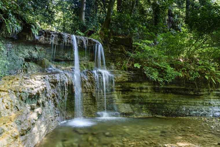 鎌倉アルプスの中腹(北鎌倉の裏手)に、鎌倉には珍しい滝が流れる寺があります。弘法大師空海によって開かれたという霊場「称名寺」。空海が不動明王の石像を刻み本尊とし、大黒天の石像を刻み守護神として祀ったのが始まりといわれています。その後、空海が不動明王に祈祷を行ったところ水が湧き出し滝となり、大黒天に祈祷を行ったところ、像の俵からコメがこぼれ出したんだとか。滝は、今でも健在で「陰陽の滝」と呼ばれています。
