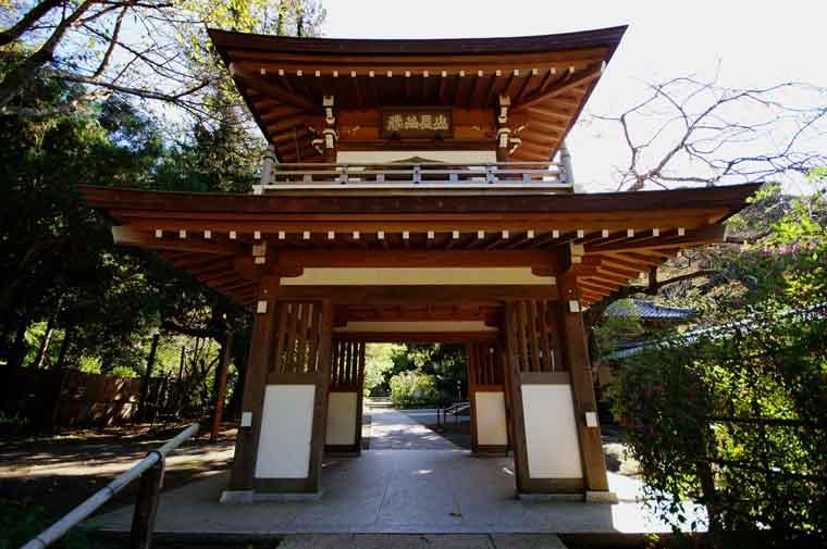 緑に囲まれた静寂なたたずまいの禅寺。鐘楼門は、鎌倉では珍しい唐風建築が印象的です。総門前には、「不老不死」の水といわれていた鎌倉十井の一つ「甘露ノ井」があります(現在は飲み水としては使えません)。境内奥の洞窟に祀られているのは、鎌倉七福神のひとつであり、彌勒菩薩の化身といわれている「布袋尊」。お腹をなでると御利益があるそうなので、訪れた際には、ぜひ触ってご利益をいただきましょう。