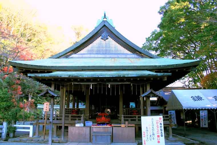 鎌倉の中心に建つ神社。1063年、源頼義が京都の石清水八幡宮を由比ガ浜辺に祀ったのが始まり。鎌倉幕府を源頼朝が開いた際に現在の場所に移動し、鶴岡八幡宮を中心に鎌倉の町が整備されました。この場所は、三方を強い龍脈のパワーが流れる山に囲まれており大地のエネルギーが集まる「龍穴の地」といわれ、パワースポットとしても名高い場所。本宮の楼門に掲げられた「八幡宮」の額の「八」の文字が、一対の鳩で表されているのも見どころです。八幡神の使いが「鳩」であり、鶴岡八幡宮は別名「鳩宮」と呼ばれることも。鳩をモチーフにしたお守りもあります。ピンク地に桜が舞うデザインほか、御朱印帳も人気。
