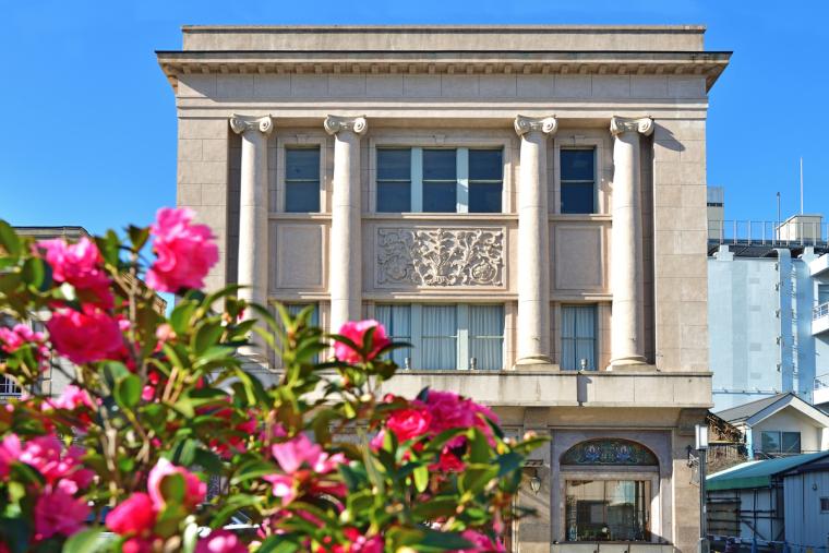 昭和3(1928)年に、旧武州銀行川越支店として建造されたもの。直径約1メートルにもなる外壁の太い柱には、古代ギリシャのドリス様式が取り入れられていて、豪華で重厚感あふれる外観。国の登録有形文化財に指定されています。