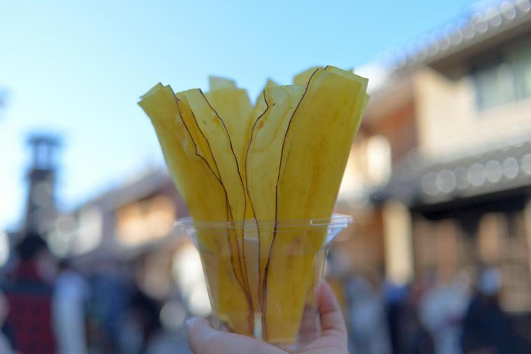 国産素材を使ったなめらか食感のプリンはお土産にも良いですが、食べ歩きなら「どんだけ~芋プリン」(700円)を。ダイスカットのおいもが入った「川越いもプリン」に大人気の「川越芋のモンブランソフト」をのせて、パリパリのいもチップをトッピング。多彩な食感が魅力です。