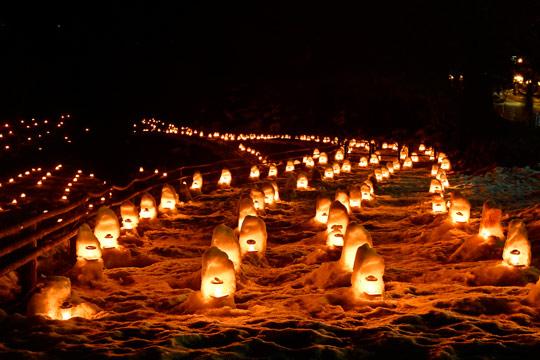 夜はライトアップが美しく幻想的な雰囲気に。日本夜景遺産に認定された「ミニかまくら」の点灯は見逃せません!雪で路面が滑りやすくなっているので、スノーブーツや歩きやすいスニーカーで出かけるのがおすすめです。