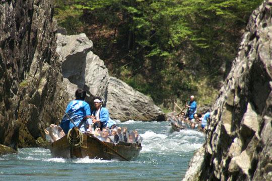 船頭さんの巧みな櫂(かい)さばきでアクティブに川を下っていくと、楯岩・積み木岩・ゴリラ岩などの奇岩怪石を見ることができます。大自然が生み出した渓谷美を船の上から感じてみてはいかが。