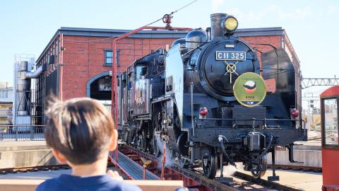 下今市駅から鬼怒川温泉駅間で、2017年より運行が始まった蒸気機関車「SL大樹(エスエルたいじゅ)」。2つの駅には円形の転車台があり、SLがゆっくりと回転する迫力満点のシーンを間近で見ることができます。