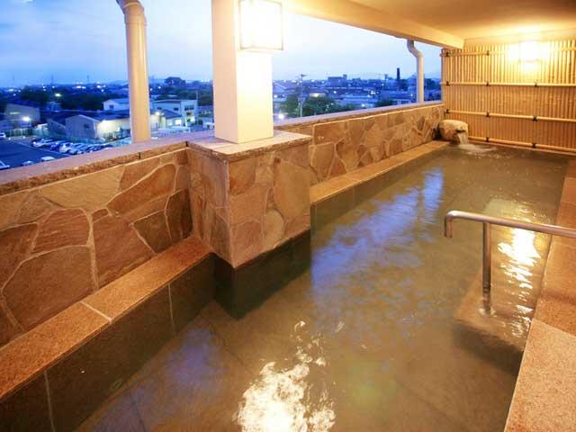 温泉館を併設する「ホテルグランスパ アベニュー」では、宿泊者は無料で男女別の温泉大浴場や女性用露天風呂が利用できる。1分間に882リットル湧出する湯は、とろりとした肌ざわり。ホテルのツインやダブルの客室も温泉を引く。