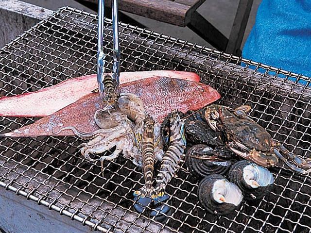 - 網焼きコーナー座席料(90分、4~5名)=1500円/焼あなご(木~月曜のみ)=時価/