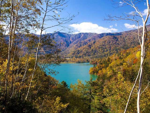 支笏湖よりも標高が300m以上高いところにあり、北海道の形に似ている周囲5kmほどの小さな湖。展望台からは原生林に覆われた湖の一端しか見られない。道道78号線が通年通行止め。