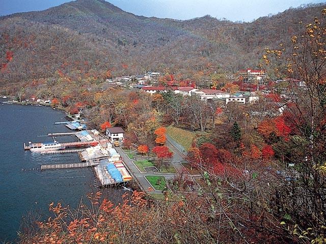 原生林に囲まれた支笏湖の東岸に湧く温泉。豊富に湧き出る無色透明の湯は肌にやわらかく、美肌づくりの美人の湯として知られている。紅葉の季節は風景の美しさが一段と増す。