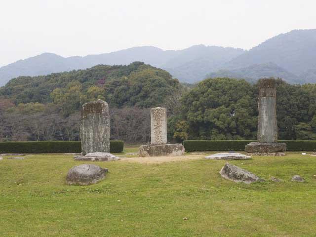 7世紀後半から奈良・平安時代にかけて九州を治め、外交、軍事、経済を担った役所があったところ。その一帯を平面復元し、公園として整備。都府楼跡とも呼ばれる。国の特別史跡。