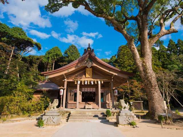 宝満山のふもとに鎮座する神社で、主祭神は玉依姫命。魂と魂(玉)を引き寄せ合う(依)という御神徳から、男女の縁はもとより、家族、友人、仕事など、あらゆる良縁にご利益がある。宝満山登山の出発地点でもあり、参拝する登山者の姿を多く見かける。