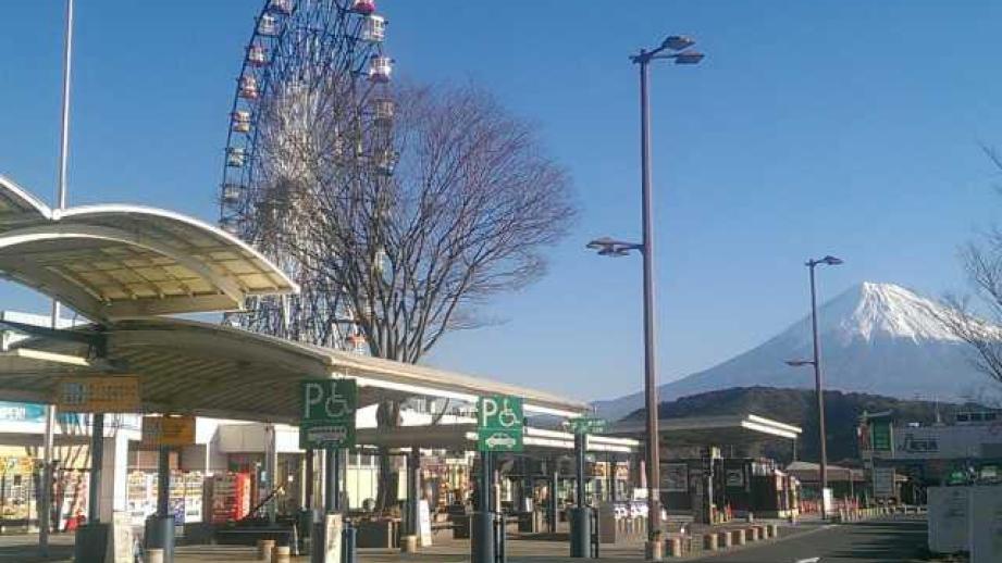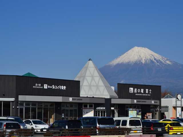 静岡県の道の駅第1号。富士五湖や伊豆半島へのドライブの休憩処として最適の道の駅だ。屋上から眺める霊峰富士が素晴らしい。下り線側にも軽食堂があり、上下線間は地下道で行き来できる。