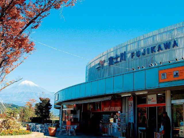 高速道路のSA・PAから眺める富士山の眺望は、ここが一番と言われる。静岡のみやげ品や富士山にちなんだ雑貨が人気。「道の駅富士川楽座」が隣接。