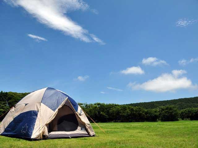 開放的なフリーサイトは、混雑時のみ区画される。炊事棟、トイレ、シャワーなど設備も充実。隣接するマザー牧場内には、10種23棟のグランピング施設があり、手軽にアウトドアライフを満喫できる。