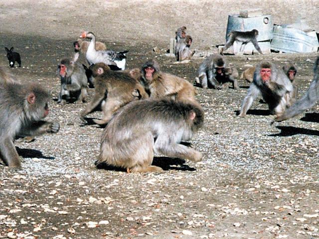 高宕山一帯は、国の天然記念物に指定されているニホンザルの生息地で、餌づけに成功した約130匹の群れを山の斜面に設けられたケージの中で飼育し、一般公開している。