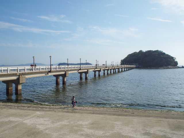 蒲郡のシンボルともいえる竹島と対岸を結ぶ。全長は387m。竹島には縁結びの神を祀る八百富神社があり、“縁結びの橋”と呼ばれている。夫婦やカップルで橋を渡ると縁起が良いとされている。