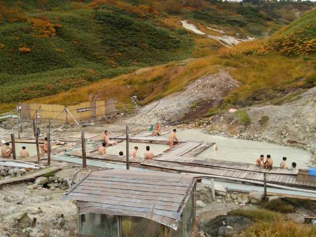標高1400mに湯煙をあげて源泉が湧き出し、硫黄の香りが漂う、まさに秘境。その硫黄泉を惜しげもなく掛け流しにした露天風呂からは八幡平の大自然が一望でき、美しい日の出も見られる。