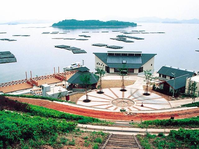ダム湖水に囲まれた自然いっぱいの駅。直売所やレストランがある交流館と、多目的ホール、多目的グラウンド、ふれあい広場、デイキャンプ場など多彩な施設で終日楽しめる。
