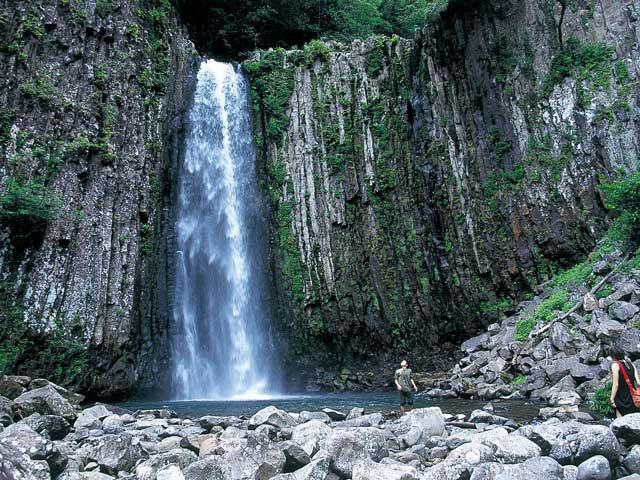 球磨川の支流、鹿目川上流にかかる雄滝と雌滝、平滝の総称。日本の滝百選の一つに数えられている。毎年8月第1日曜は滝まつりで、そうめん流しなどのイベントが催される。