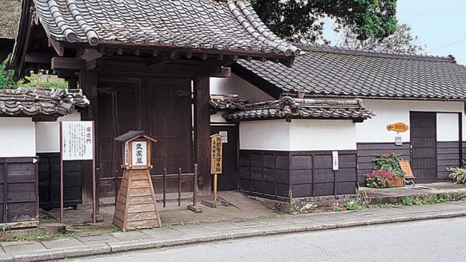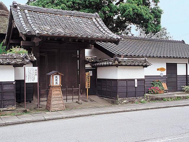 風格漂う重厚な門は、人吉城の建造物で唯一残った堀合門。屋敷は相良藩主が休憩所としていた茅葺の御仮屋屋敷で、西南戦争において、田原坂で敗れた西郷隆盛が一時宿舎としたもの。併設する喫茶室では球磨焼酎を使ったオリジナルのアイスが味わえる。